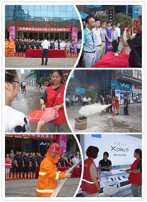 6月23日上午,衡阳公司物业管理部联合社区、派出所、商家租户、写字楼业主联合开展了消防演练活动,进一步提升项目居民消防安全意识,增强居民自救能力,并邀请辖区街道分管领导邓先林委员、安环站站长刘长峰到现场全程指导。