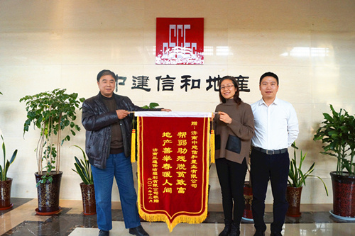 12月19日,中建·长清湖项目收到济南三通保洁公司敬赠“帮弱助残脱贫致富地产善举春暖人间”锦旗一面。