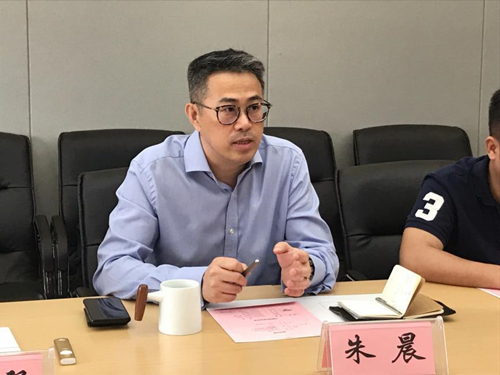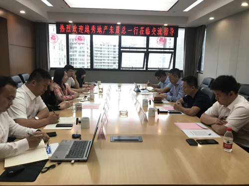 朱晨一行听取了公司的基本概况及发展情况,随后,越秀地产华中区域总经理助理李厚强对越秀地产的基本情况及核心优势做了详细介绍。